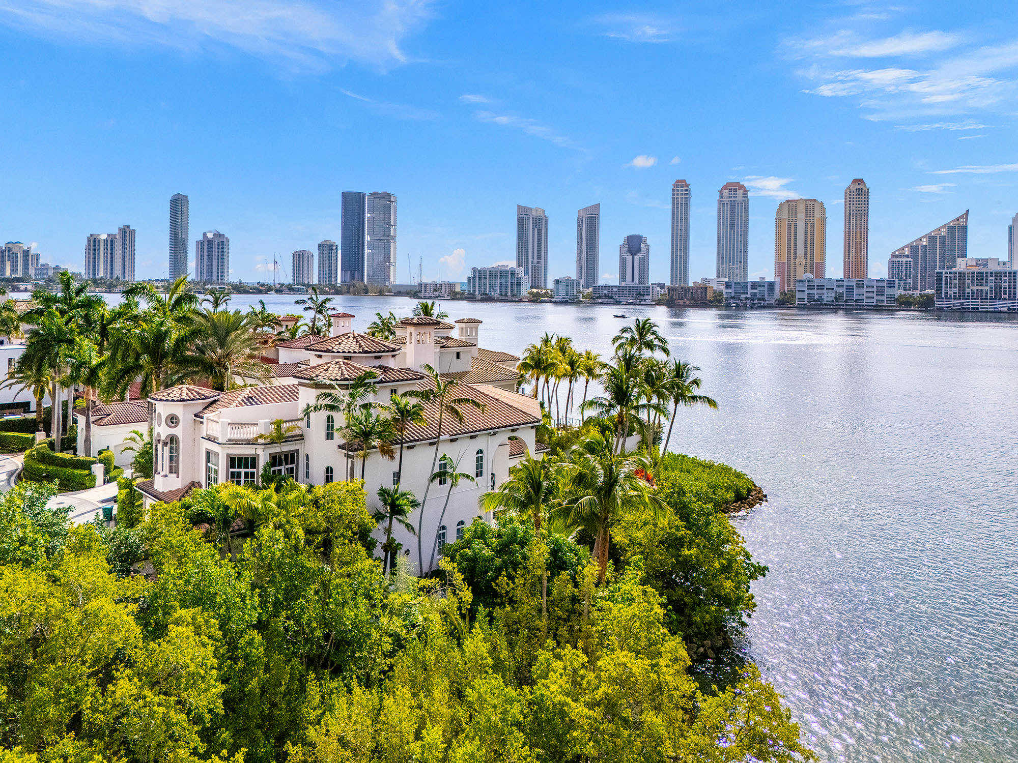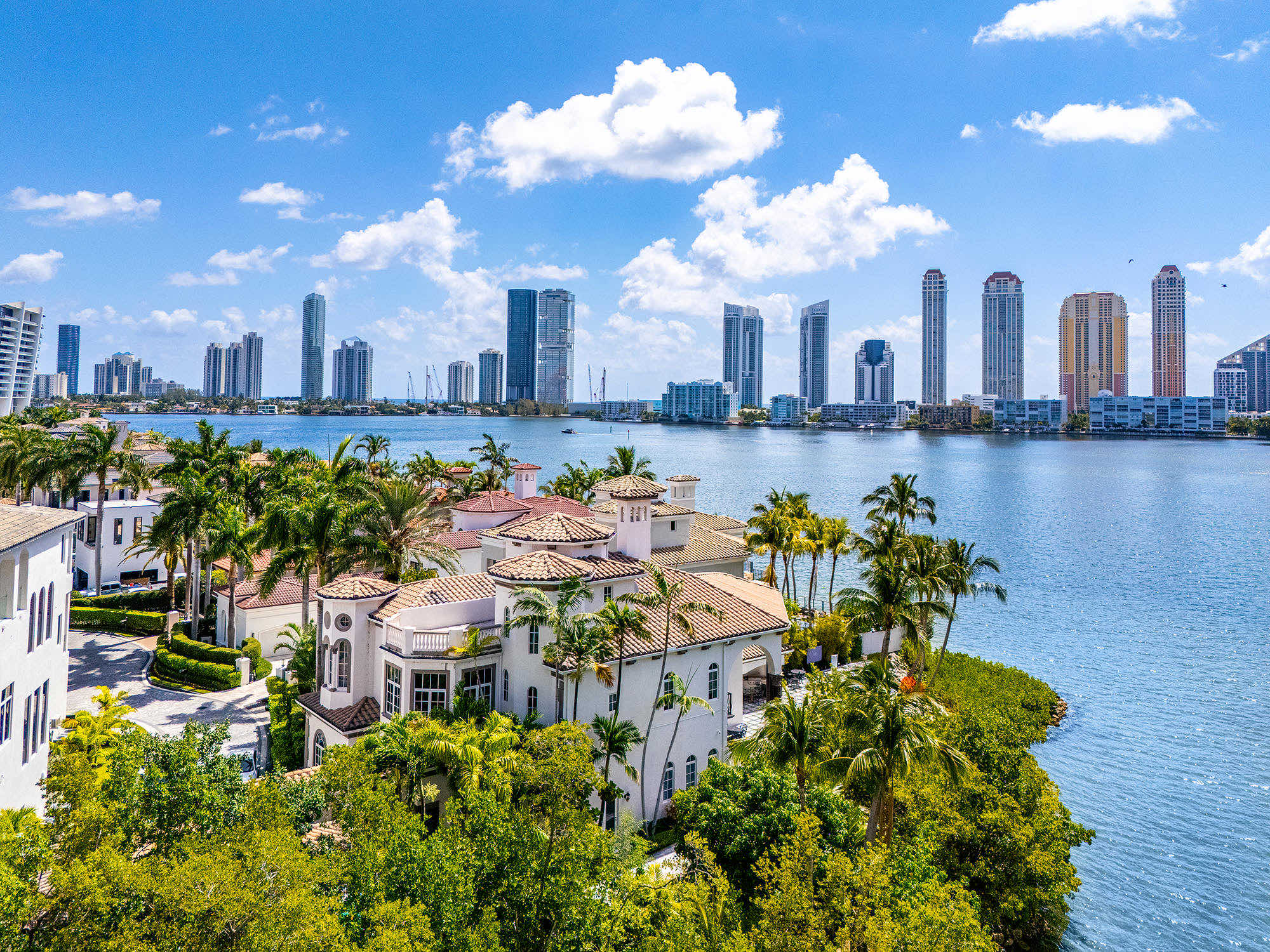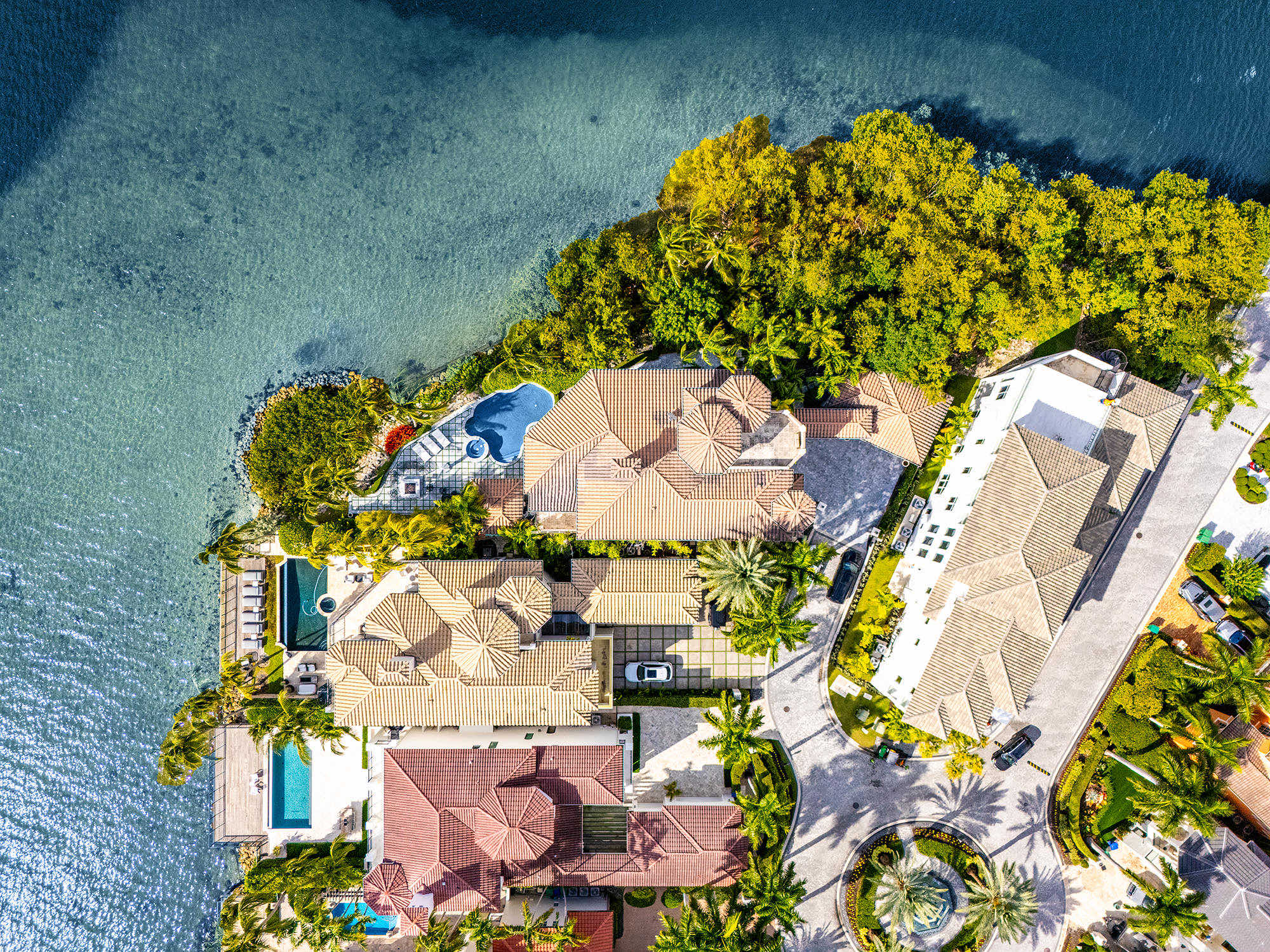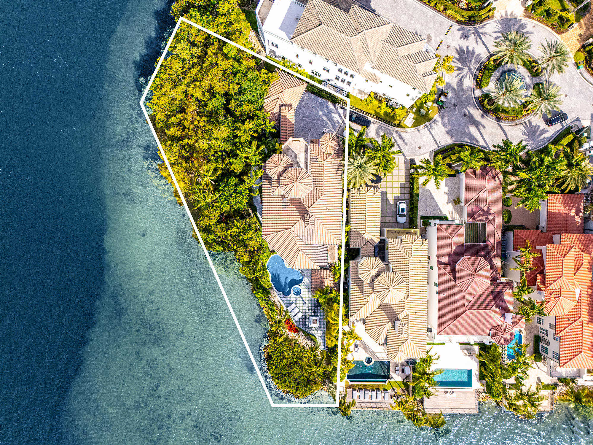 Experience unrivaled luxury located on the open bay in the prestigious gated community of Island Estates. The only home on a double lot of 24,772sf with 240 ft of water frontage. Top-of-the-line finishes, vaulted 30-foot ceilings, gourmet chef's kitchen, elevator, luxurious master suite with sitting area and veranda with sunrises and sunset panoramic views. Stunning tropical pool and spa overlooking the bay. Marble and walnut hardwood floors and impact glass. iPad-controlled smart house system, movie theater with 128-inch TV, cabana, elevator, office, service quarters, and golf cart parking. Residents have complete access to Private five-star amenities. From Exclusive golf & Tennis resort.