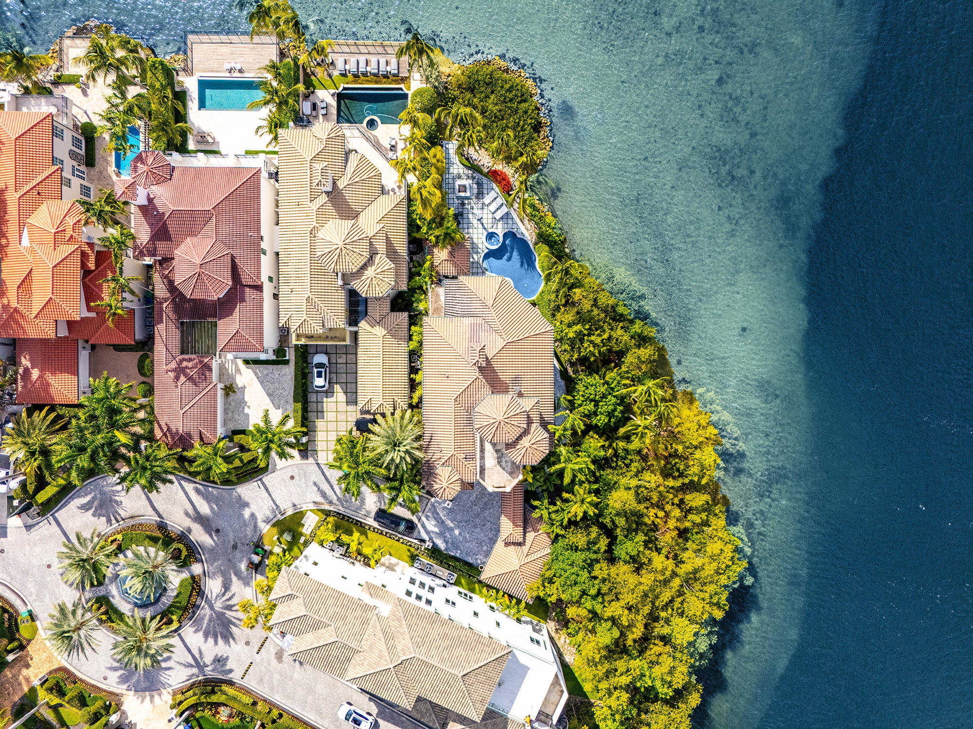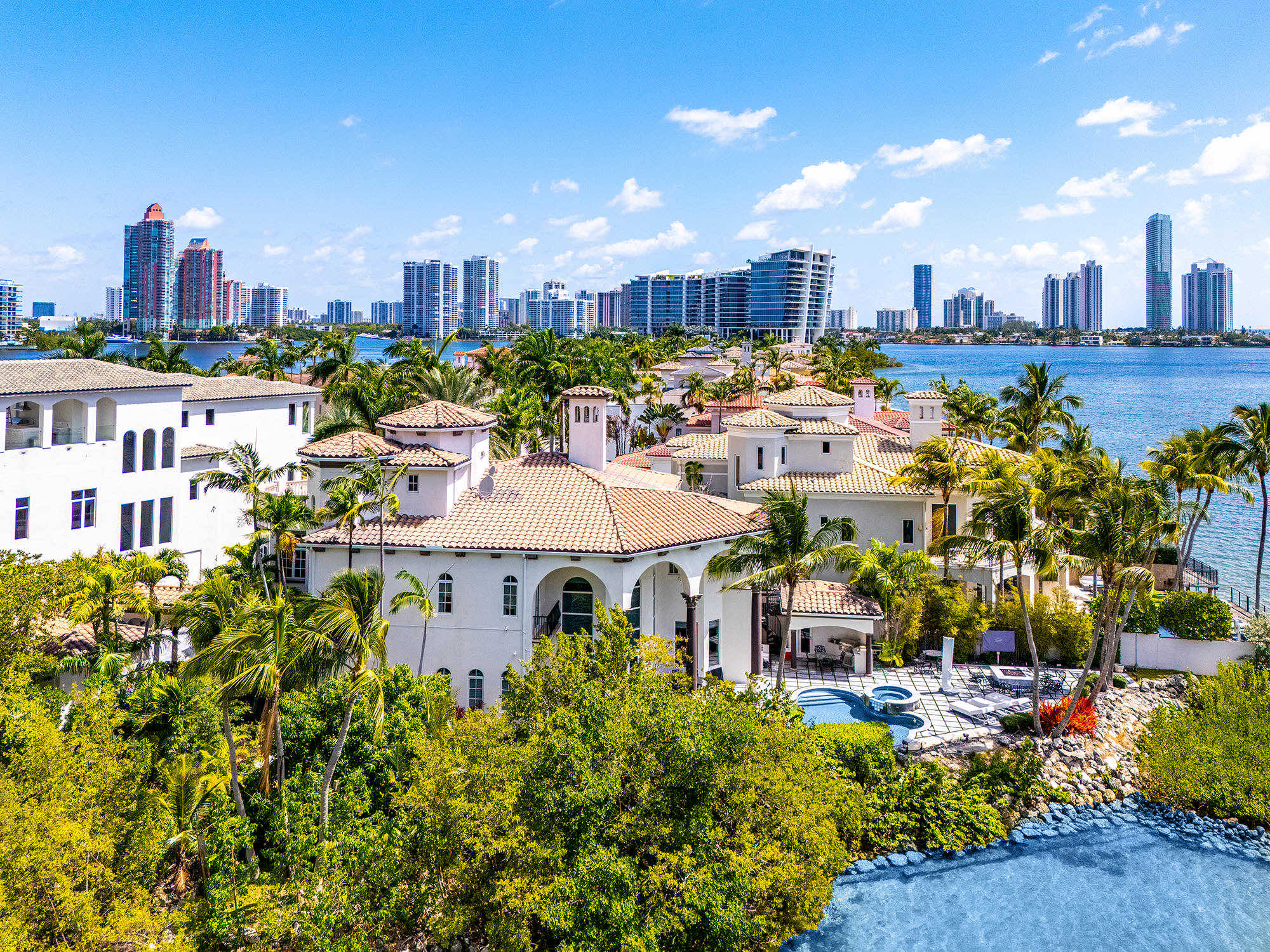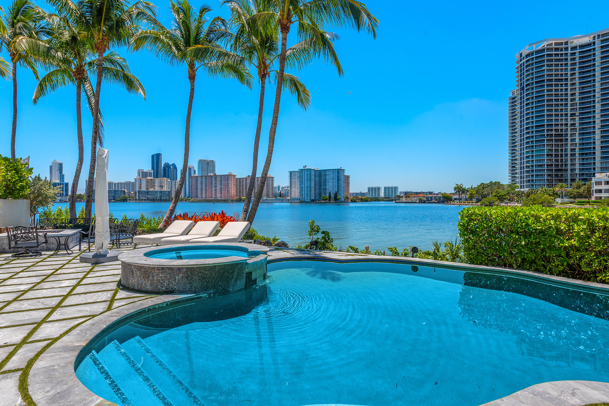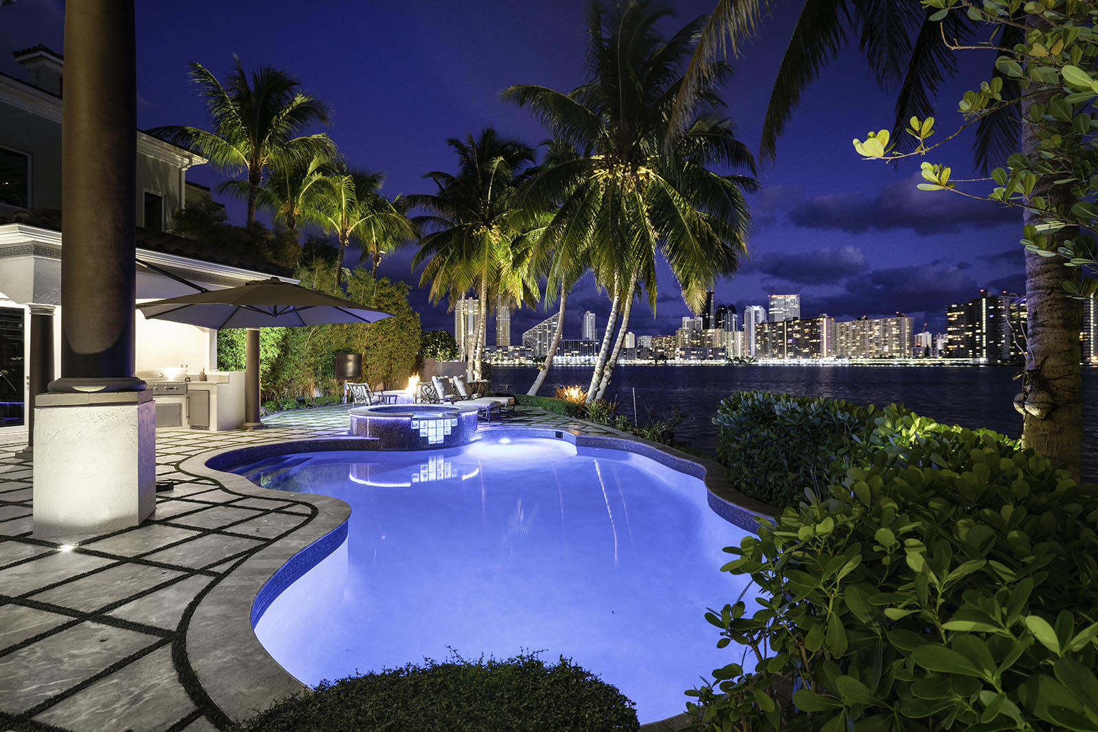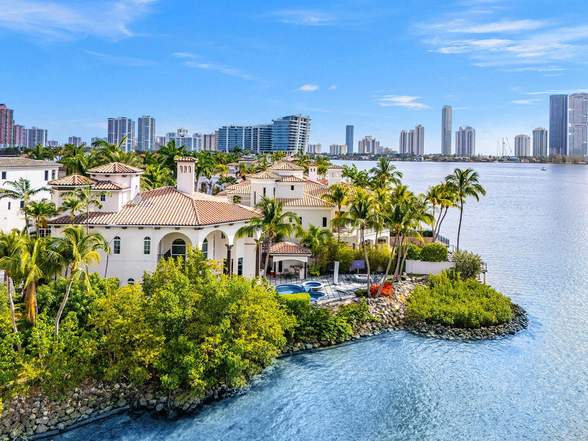 Experience unrivaled luxury located on the open bay in the prestigious gated community of Island Estates. The only home on a double lot of 24,772sf with 240 ft of water frontage. Top-of-the-line finishes, vaulted 30-foot ceilings, gourmet chef's kitchen, elevator, luxurious master suite with sitting area and veranda with sunrises and sunset panoramic views. Stunning tropical pool and spa overlooking the bay. Marble and walnut hardwood floors and impact glass. iPad-controlled smart house system, movie theater with 128-inch TV, cabana, elevator, office, service quarters, and golf cart parking. Residents have complete access to Private five-star amenities. From Exclusive golf & Tennis resort.