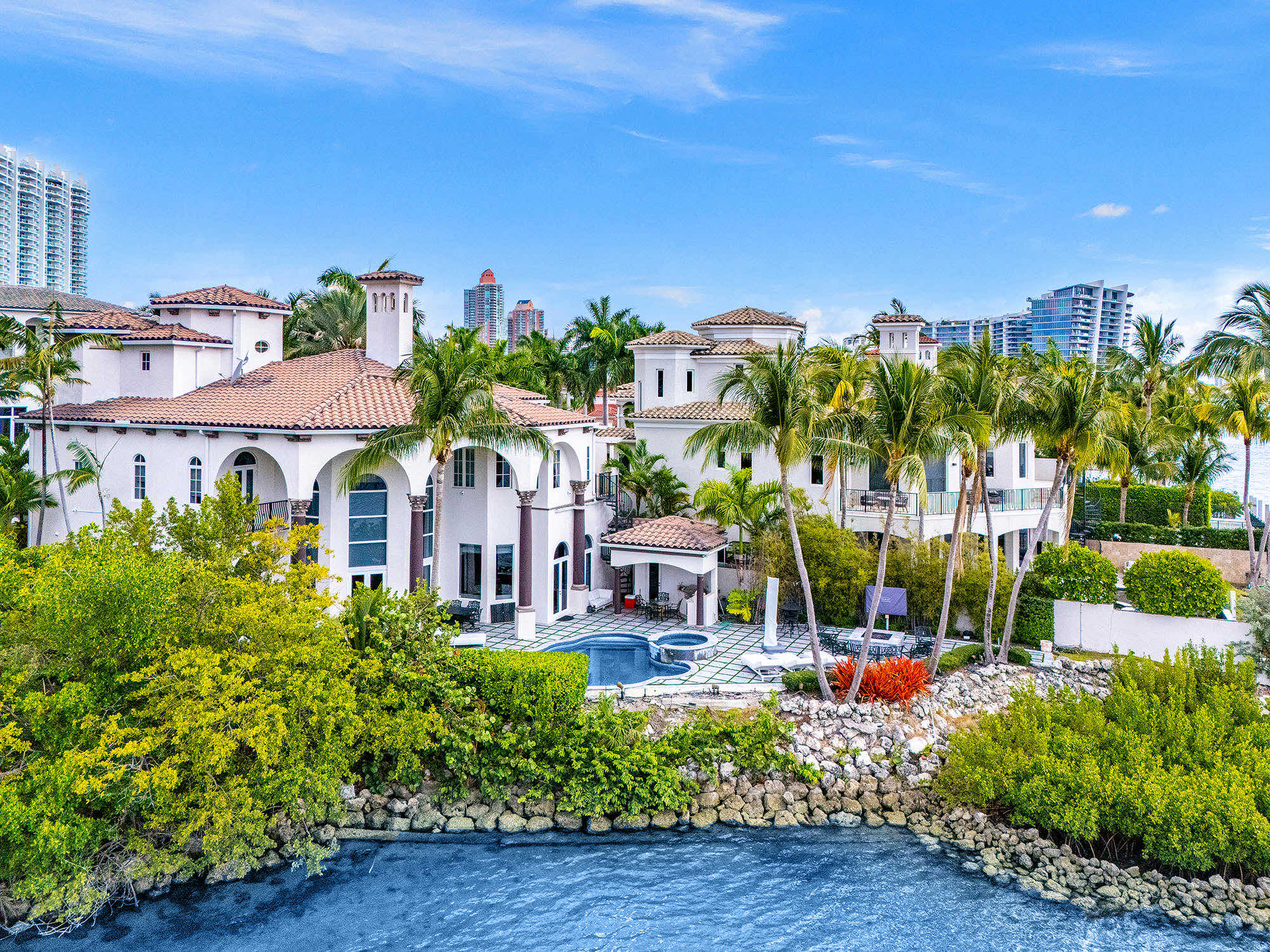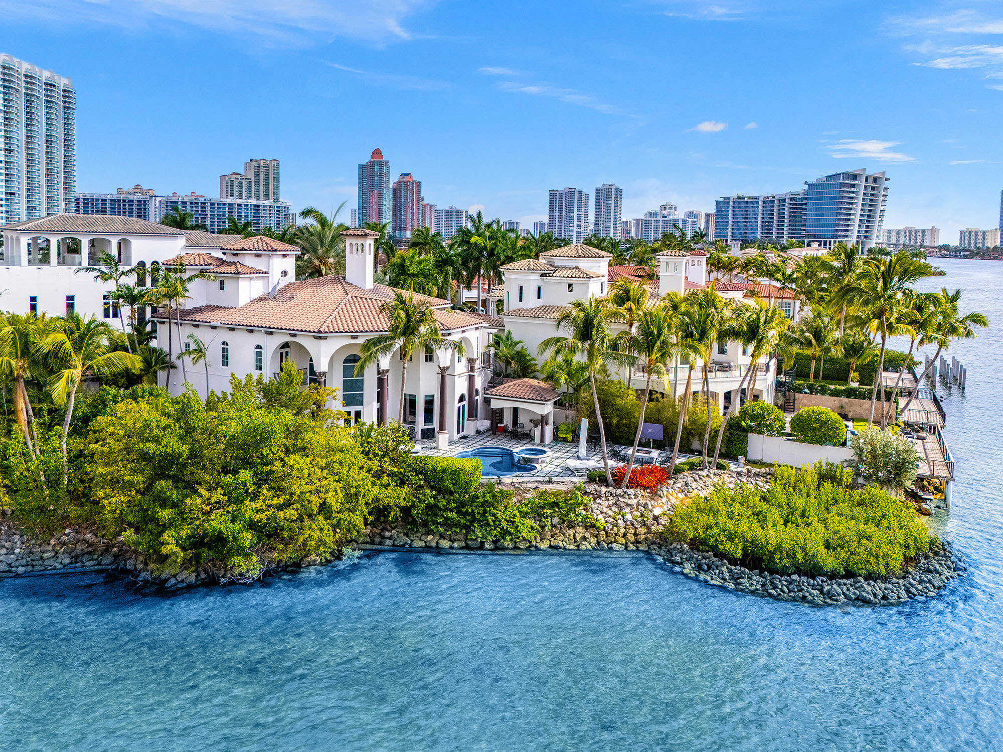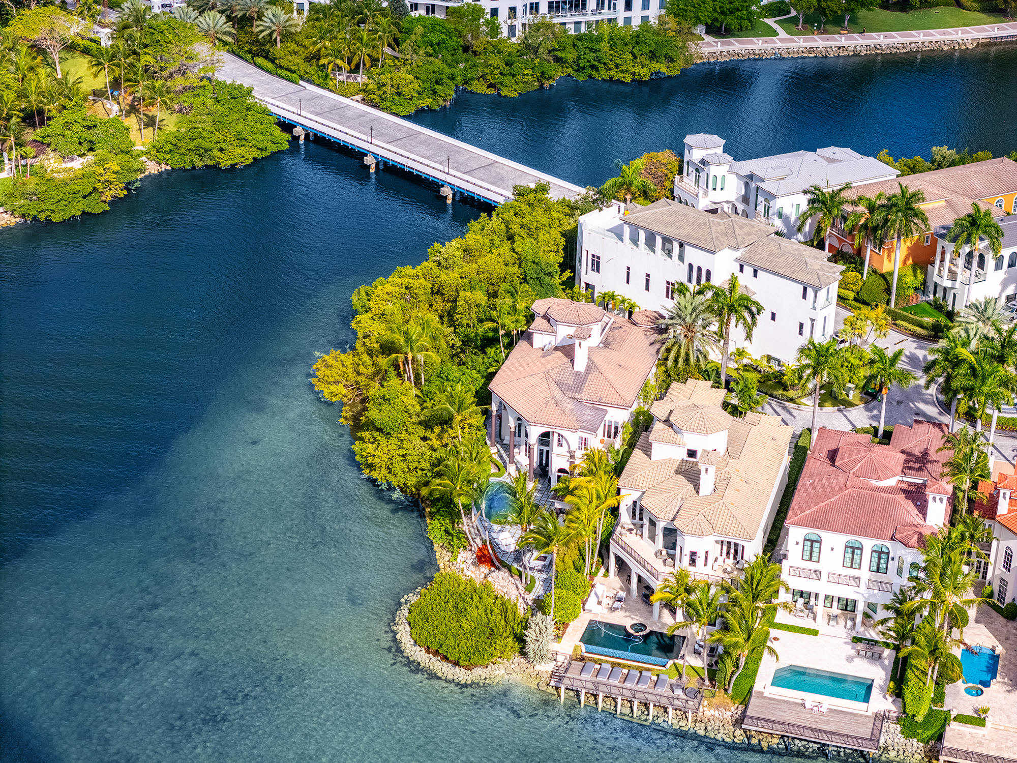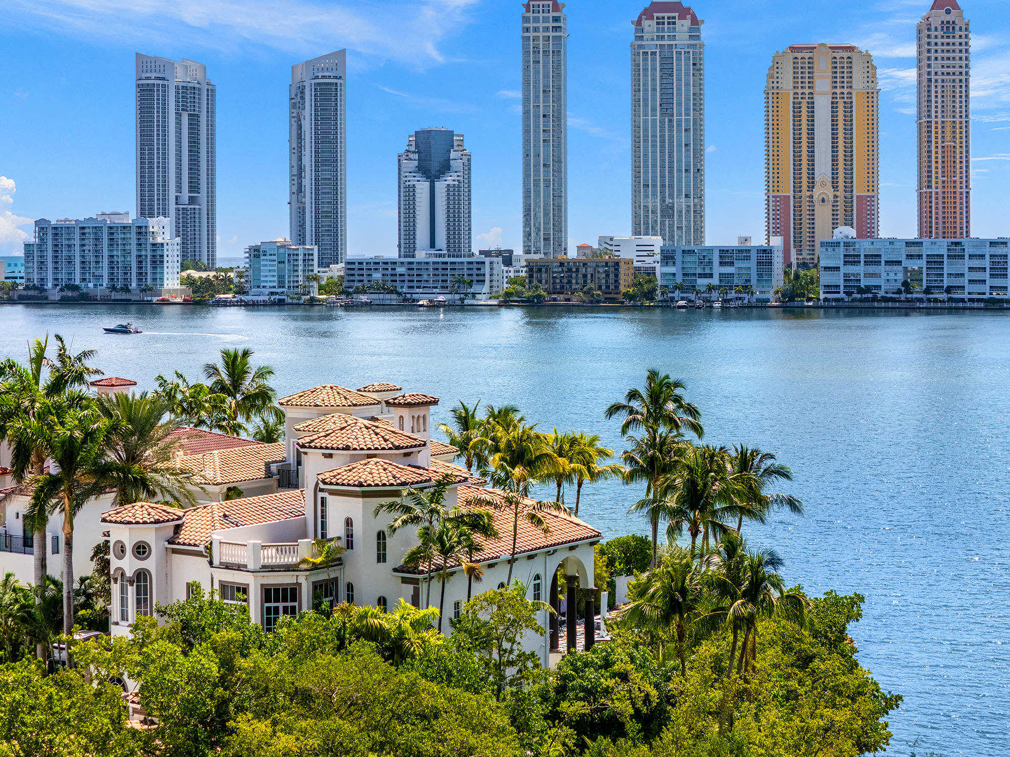 Experience unrivaled luxury located on the open bay in the prestigious gated community of Island Estates. The only home on a double lot of 24,772sf with 240 ft of water frontage. Top-of-the-line finishes, vaulted 30-foot ceilings, gourmet chef's kitchen, elevator, luxurious master suite with sitting area and veranda with sunrises and sunset panoramic views. Stunning tropical pool and spa overlooking the bay. Marble and walnut hardwood floors and impact glass. iPad-controlled smart house system, movie theater with 128-inch TV, cabana, elevator, office, service quarters, and golf cart parking. Residents have complete access to Private five-star amenities. From Exclusive golf & Tennis resort.