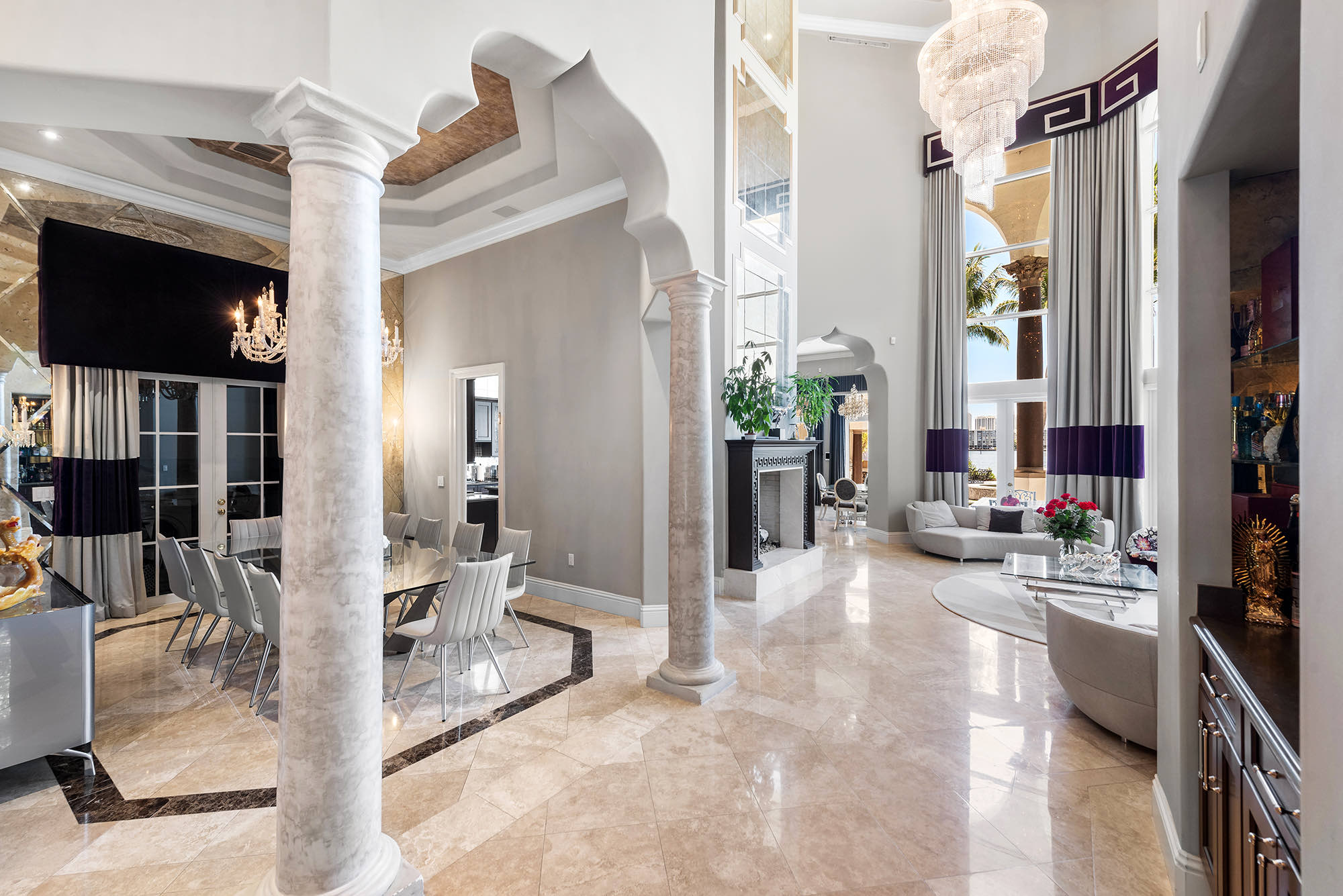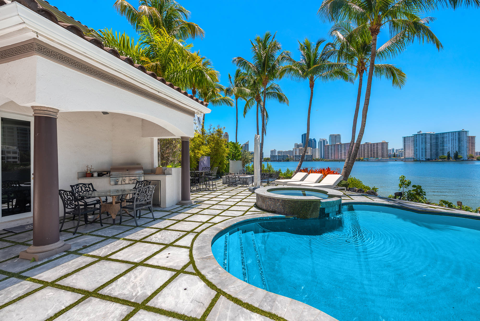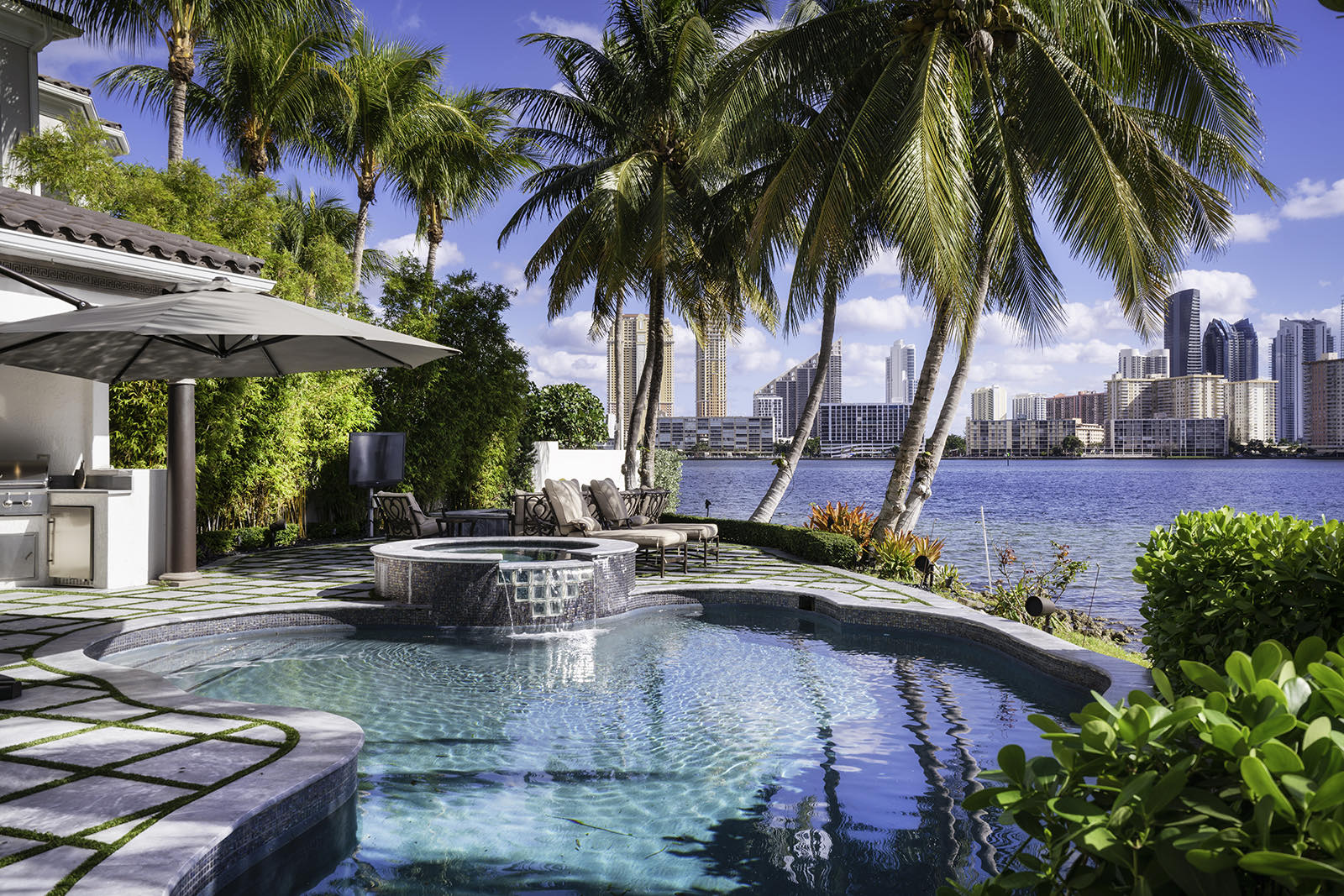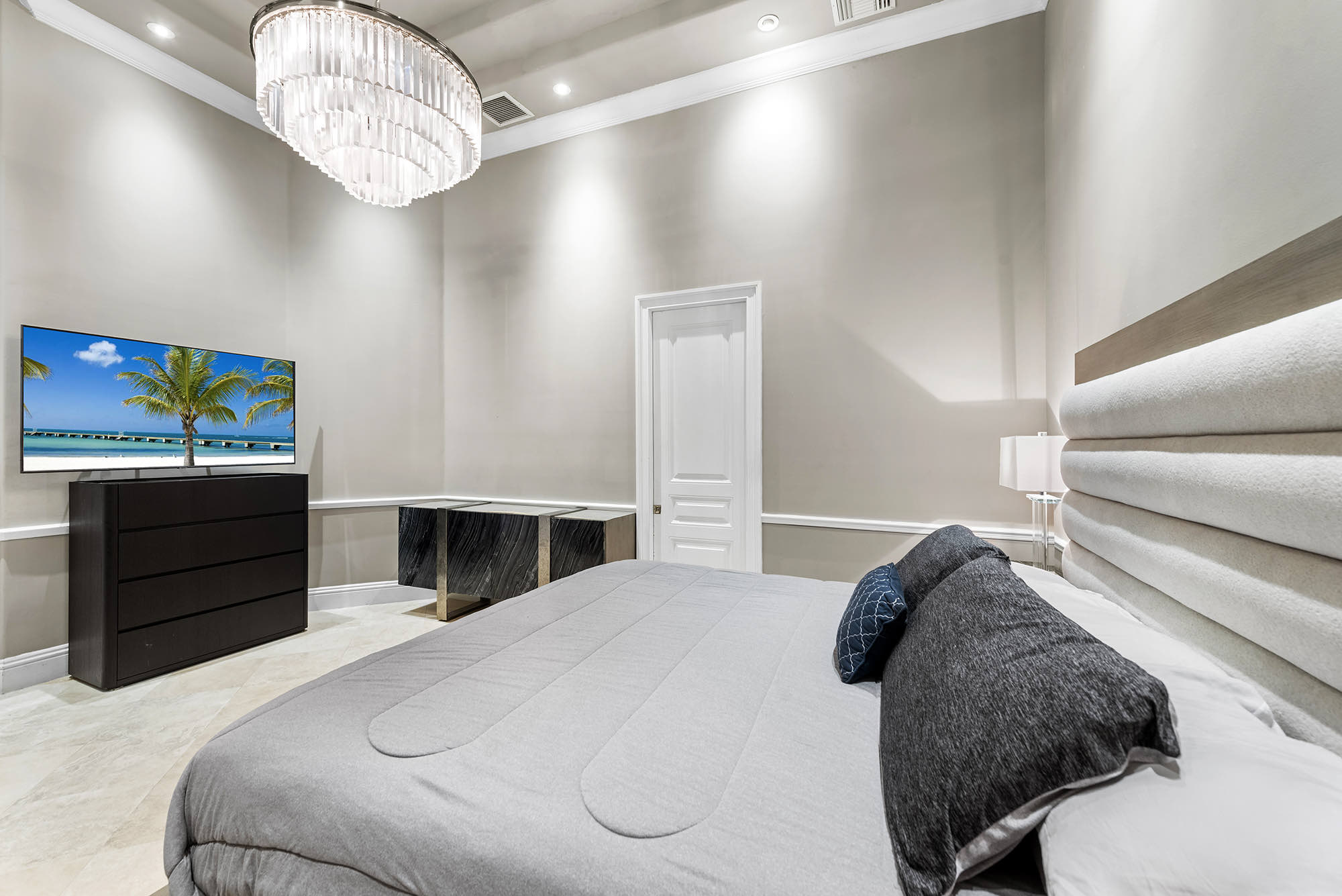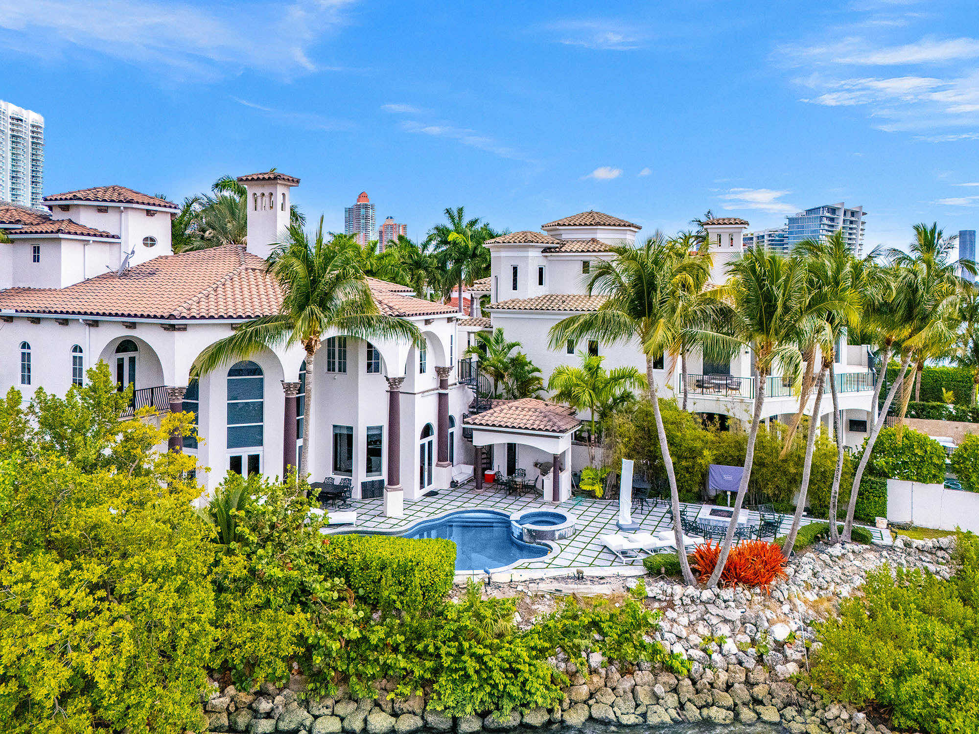 Experience unrivaled luxury located on the open bay in the prestigious gated community of Island Estates. The only home on a double lot of 24,772sf with 240 ft of water frontage. Top-of-the-line finishes, vaulted 30-foot ceilings, gourmet chef's kitchen, elevator, luxurious master suite with sitting area and veranda with sunrises and sunset panoramic views. Stunning tropical pool and spa overlooking the bay. Marble and walnut hardwood floors and impact glass. iPad-controlled smart house system, movie theater with 128-inch TV, cabana, elevator, office, service quarters, and golf cart parking. Residents have complete access to Private five-star amenities. From Exclusive golf & Tennis resort.