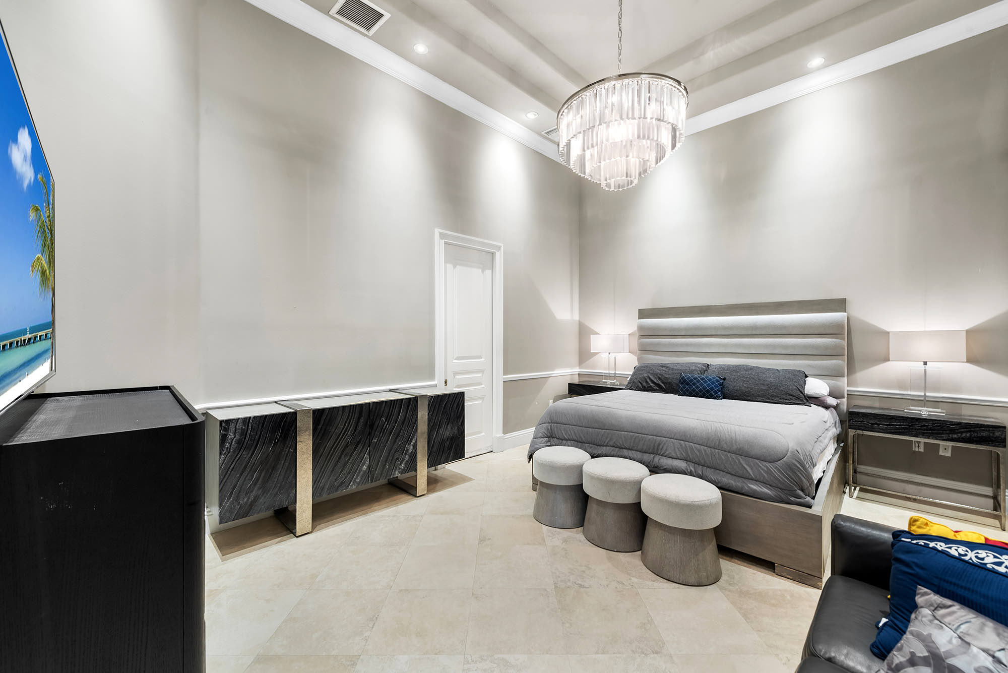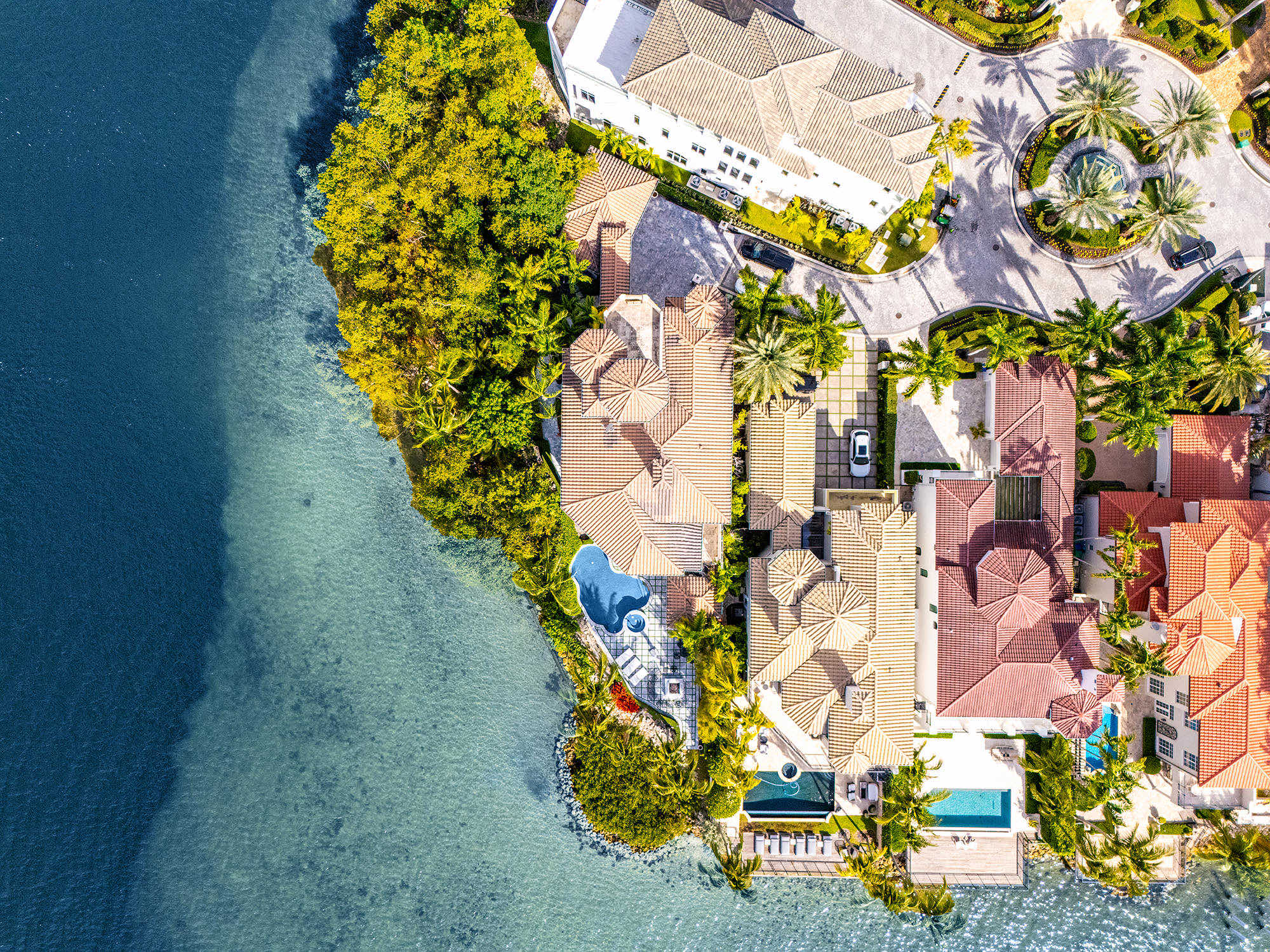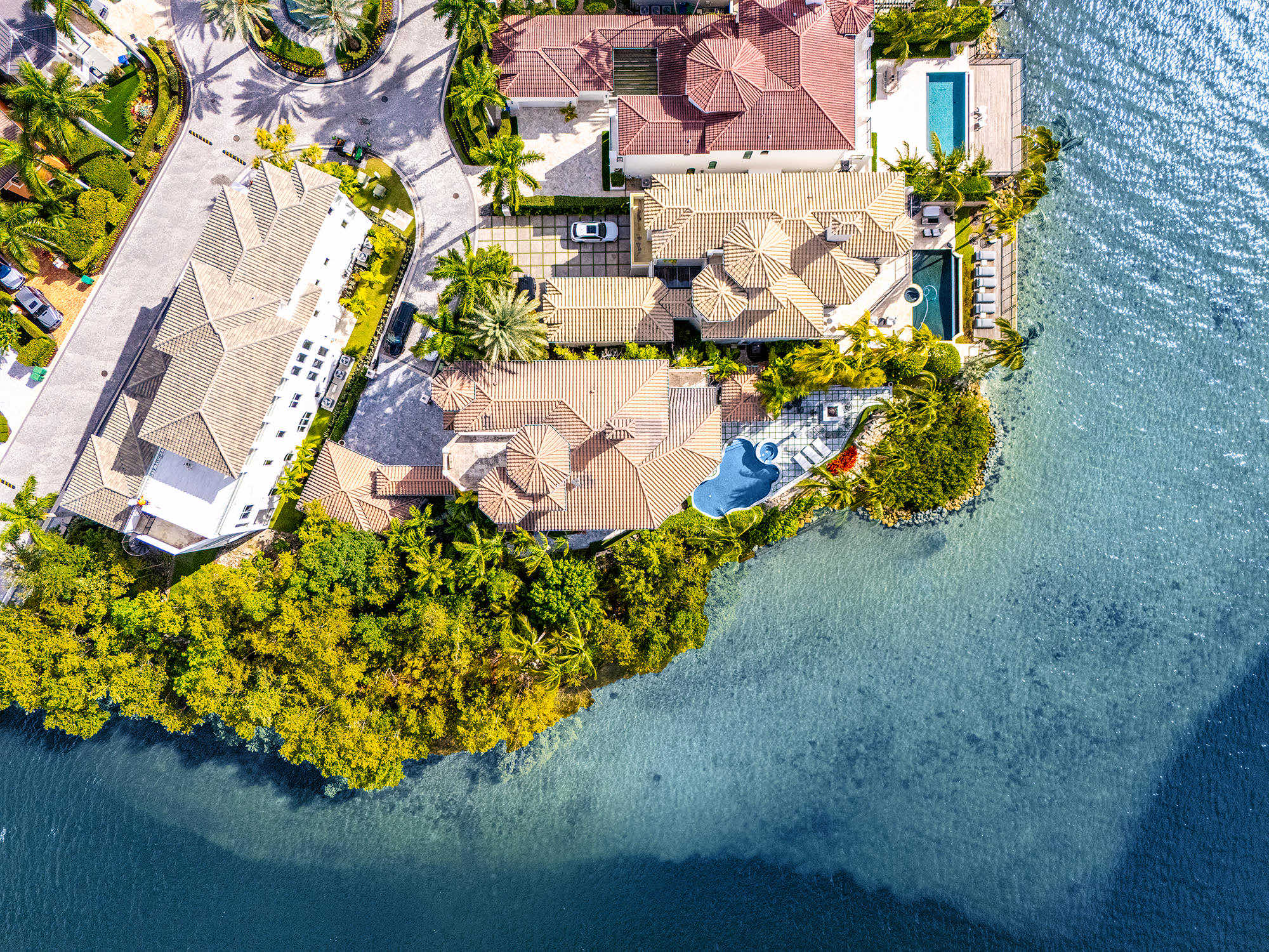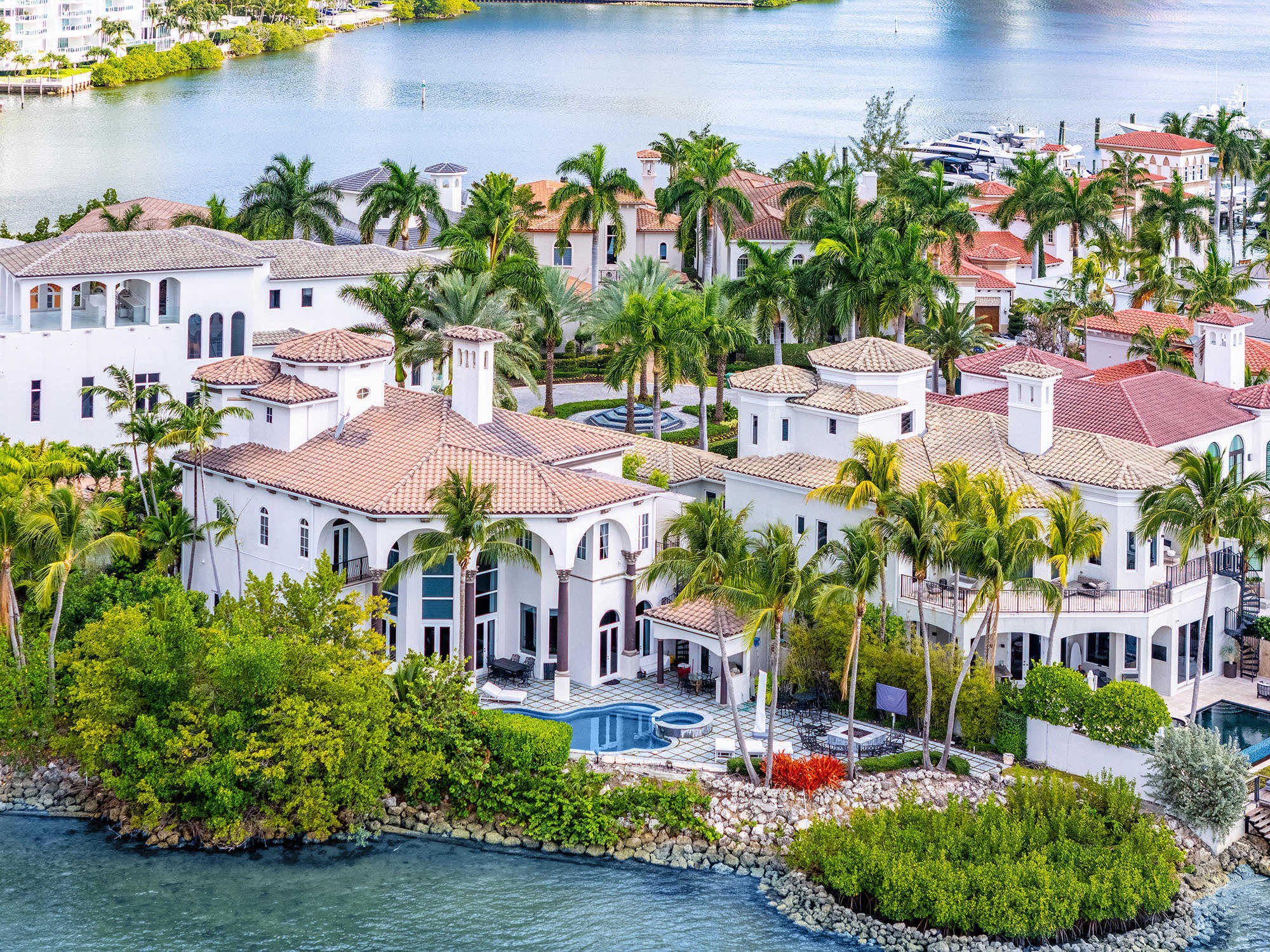 Experience unrivaled luxury located on the open bay in the prestigious gated community of Island Estates. The only home on a double lot of 24,772sf with 240 ft of water frontage. Top-of-the-line finishes, vaulted 30-foot ceilings, gourmet chef's kitchen, elevator, luxurious master suite with sitting area and veranda with sunrises and sunset panoramic views. Stunning tropical pool and spa overlooking the bay. Marble and walnut hardwood floors and impact glass. iPad-controlled smart house system, movie theater with 128-inch TV, cabana, elevator, office, service quarters, and golf cart parking. Residents have complete access to Private five-star amenities. From Exclusive golf & Tennis resort.