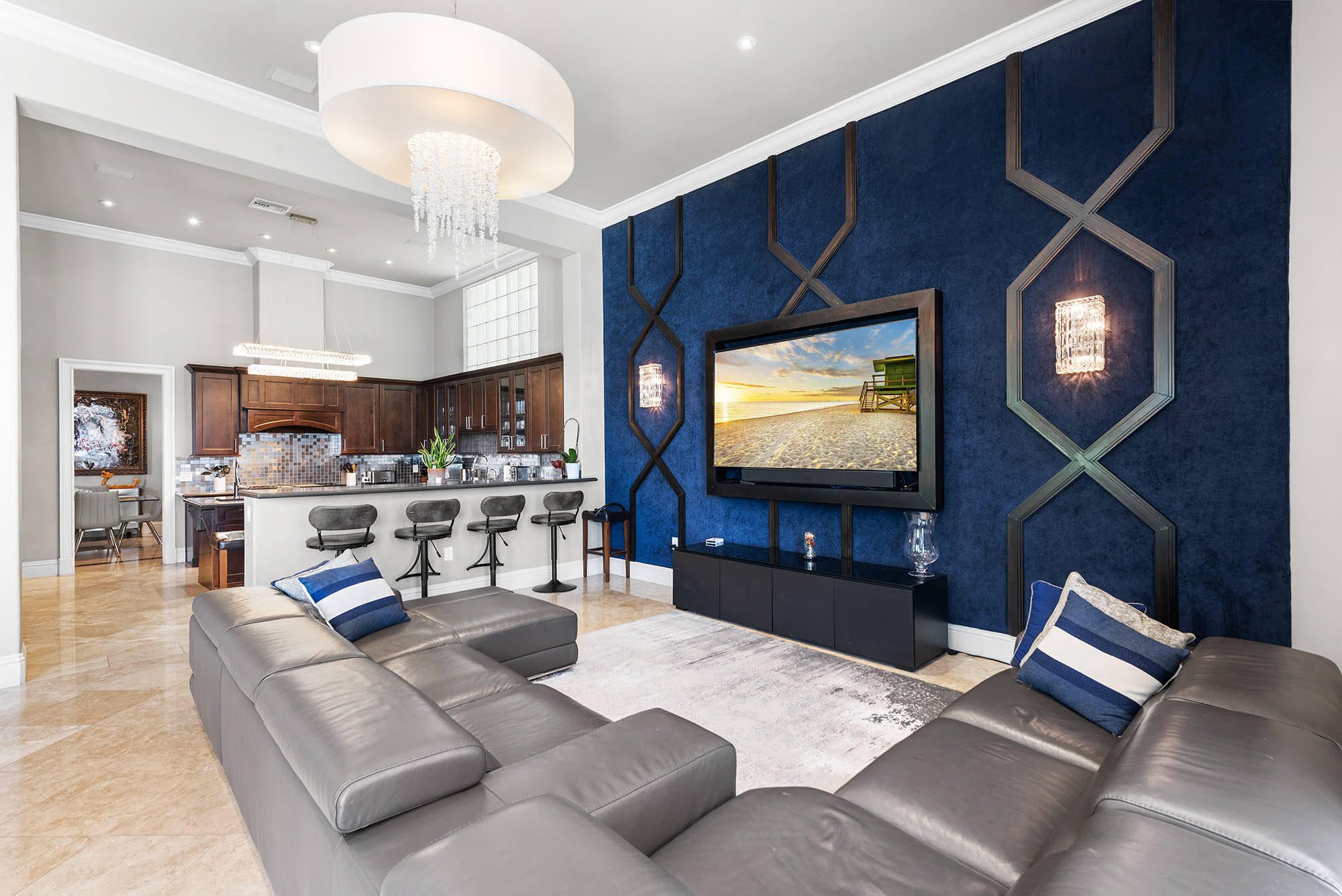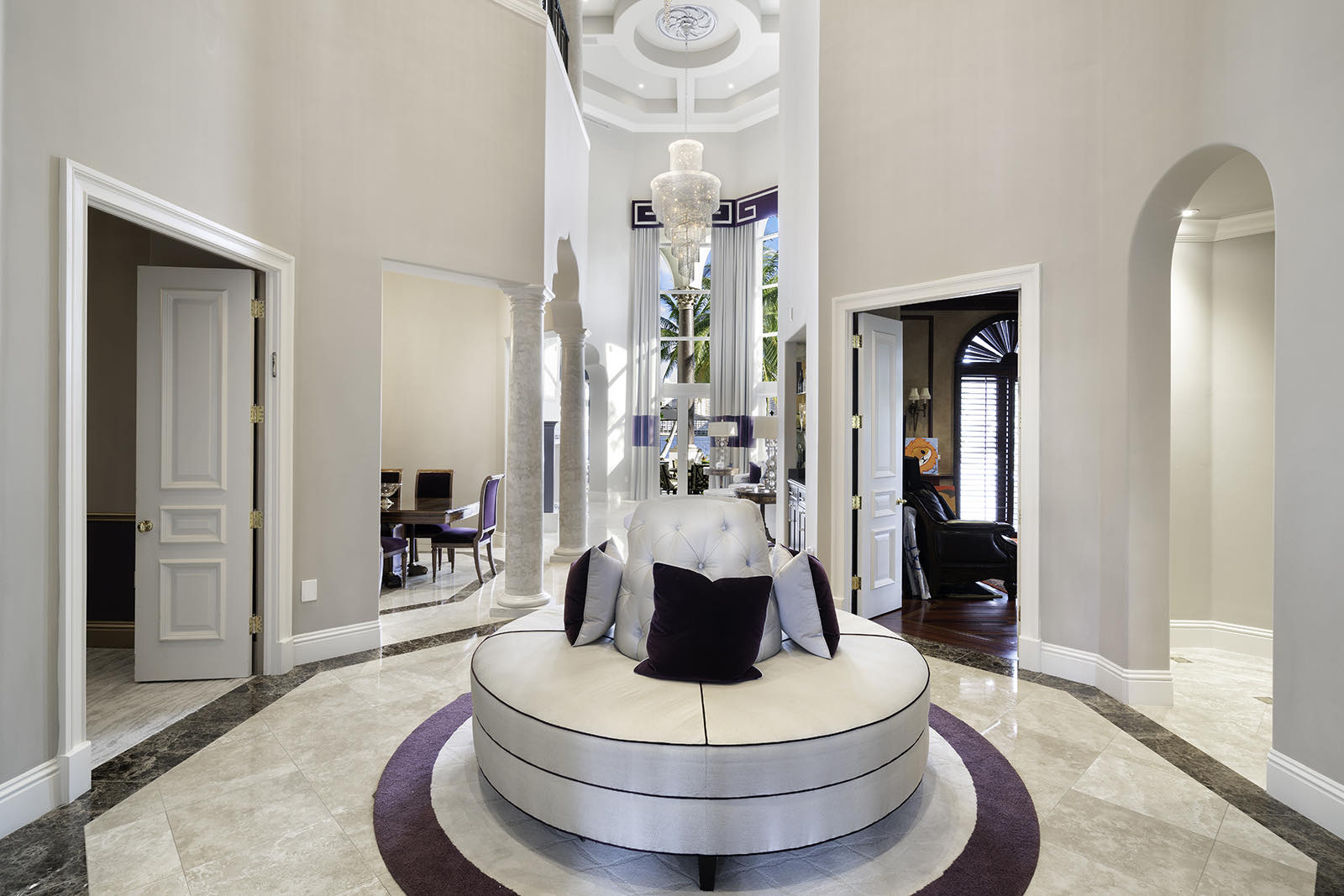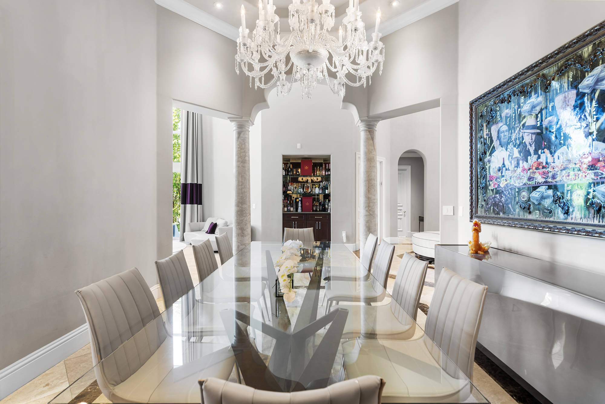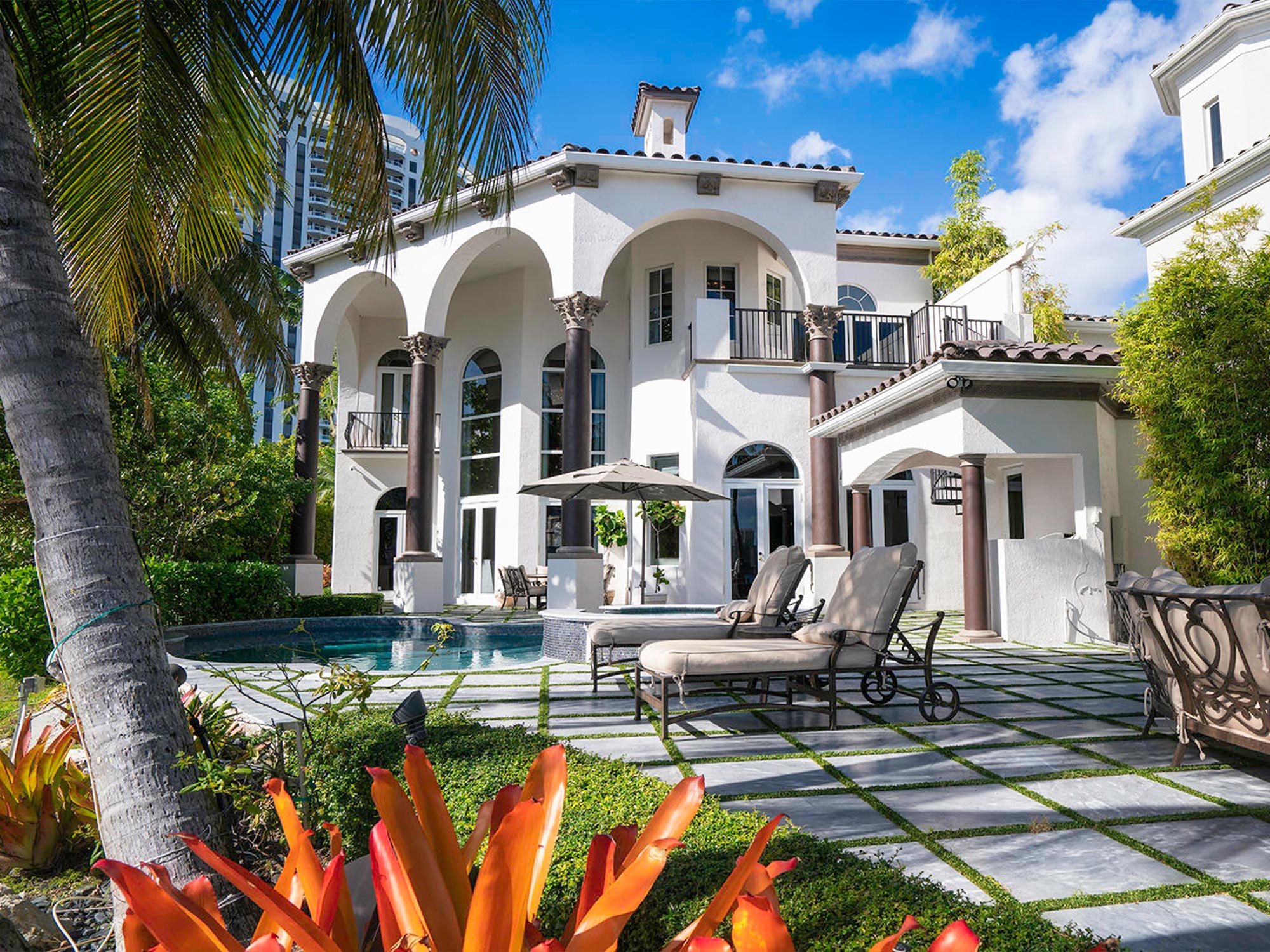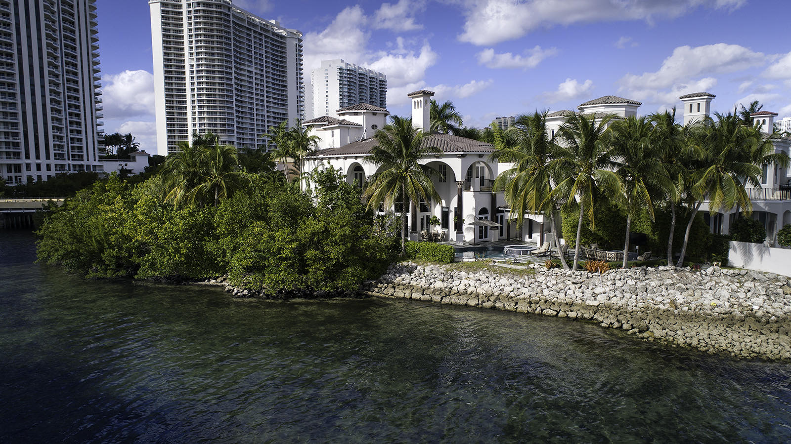 Experience unrivaled luxury located on the open bay in the prestigious gated community of Island Estates. The only home on a double lot of 24,772sf with 240 ft of water frontage. Top-of-the-line finishes, vaulted 30-foot ceilings, gourmet chef's kitchen, elevator, luxurious master suite with sitting area and veranda with sunrises and sunset panoramic views. Stunning tropical pool and spa overlooking the bay. Marble and walnut hardwood floors and impact glass. iPad-controlled smart house system, movie theater with 128-inch TV, cabana, elevator, office, service quarters, and golf cart parking. Residents have complete access to Private five-star amenities. From Exclusive golf & Tennis resort.